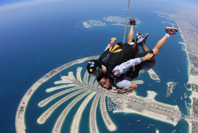 A tandem skydive is the quickest and easiest way to experience the thrill of freefall at over 120 miles per hour, while securely harnessed to one of our experienced and accomplished instructors. Adrenaline enthusiasts can live this adventure at our two world-class locations, the Palm Dropzone and the Desert Dropzone. Skydive Dubai offers an unparalleled adventure, combining breathtaking views and exhilarating thrills for participants. With iconic drop zones at the Palm and in the desert, skydivers are treated to stunning vistas of Dubai’s skyline or the vast Arabian desert. From the moment you arrive, experienced instructors ensure your safety and guide you through thorough training, preparing you for the ultimate leap of faith. As you ascend to altitude, anticipation builds, culminating in the heart-pounding moment when you exit the aircraft, plummeting at speeds of up to 120 miles per hour. The adrenaline rush of freefall is unmatched, followed by the serene descent under the canopy, allowing you to soak in the beauty of your surroundings. With professional photo and video packages available, every exhilarating moment is captured, serving as a lasting reminder of your extraordinary experience with Skydive Dubai.